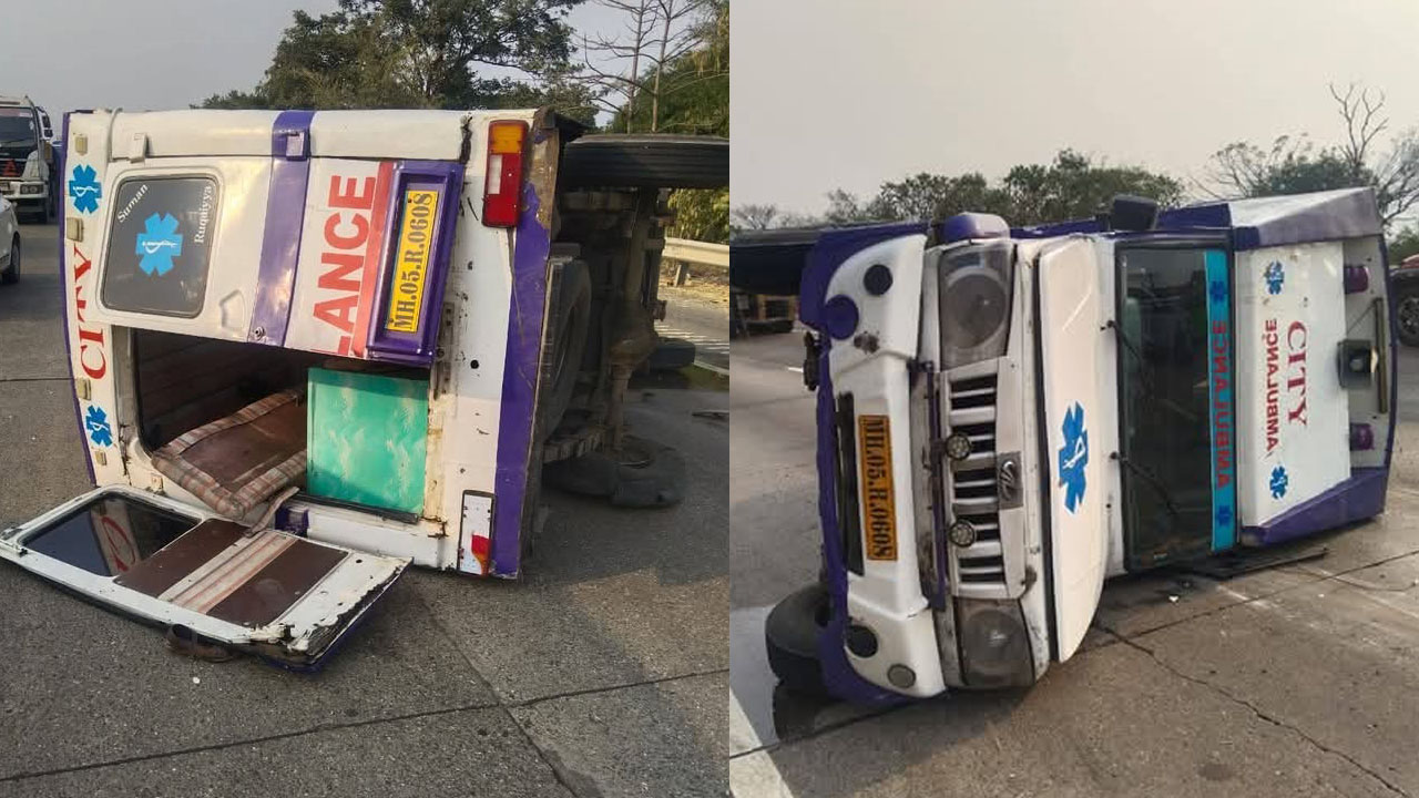 दरम्यान, रुग्णवाहिकेचा मागचा टायर फुटल्याने गाडी रस्त्यातच पलटी झाली होती. या घटनेची माहिती मिळताच पोलीसांनी घटनास्थळी धाव घेतली. तर, या अपघातात गाडीतील चार प्रवासी जखमी झाल्याने त्यांना नवीमुंबईतील एमजीएम रुग्णालयात दाखल करण्यात आले असल्याचे सामाजिक कार्यकर्ते विजय भोसले यांनी सांगितले आहे. तर, या अपघातात रुग्णवाहिकेचा चालक किरकोळ जखमी झाला असून महिला आणि पुरुष यांना फ्रॅक्चर असल्याची माहिती देण्यात आली आहे. तर, रूग्णवाहिकेच्या अपघातानंतर मृत इसमाचा मृतदेह हा दुसऱ्या रूग्णवाहिकेने रवाना करण्यात आल्याचे सांगण्यात आले आहे.