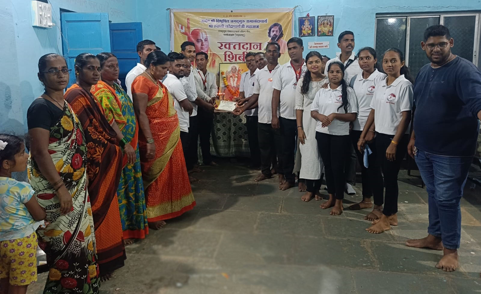 दिघी : जगद्गुरु रामानंदाचार्य नरेंद्रचार्यजी महाराज दक्षिण पीठ नाणिजधाम महाराष्ट्र यांच्या वतीने रक्तदान महायज्ञ शिबिराचे आयोजन करण्यात आले. यावेळी तालुक्यातील 376 नागरिकांनी रक्तदान केले.