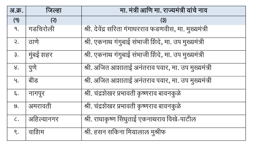 अखेर बीडचं पालकमंत्रिपद हे राष्ट्रवादीकडेच राहिलं आहे, मात्र धनंजय मुंडे यांना डच्चू मिळाला असून, बीडचे नवे पालकमंत्री हे आता अजित पवार असणार आहेत. बीड सोबतच अजित पवार यांच्याकडे पुण्याचं देखील पालकमंत्रिपद असणार आहे. तर एकनाथ शिंदे यांच्याकडे मुंबई शहर आणि ठाण्याचं पालकमंत्रिपद देण्यात आलं आहे. आदिती तटकरे या रायगडच्या पालकमंत्री असणार आहेत.