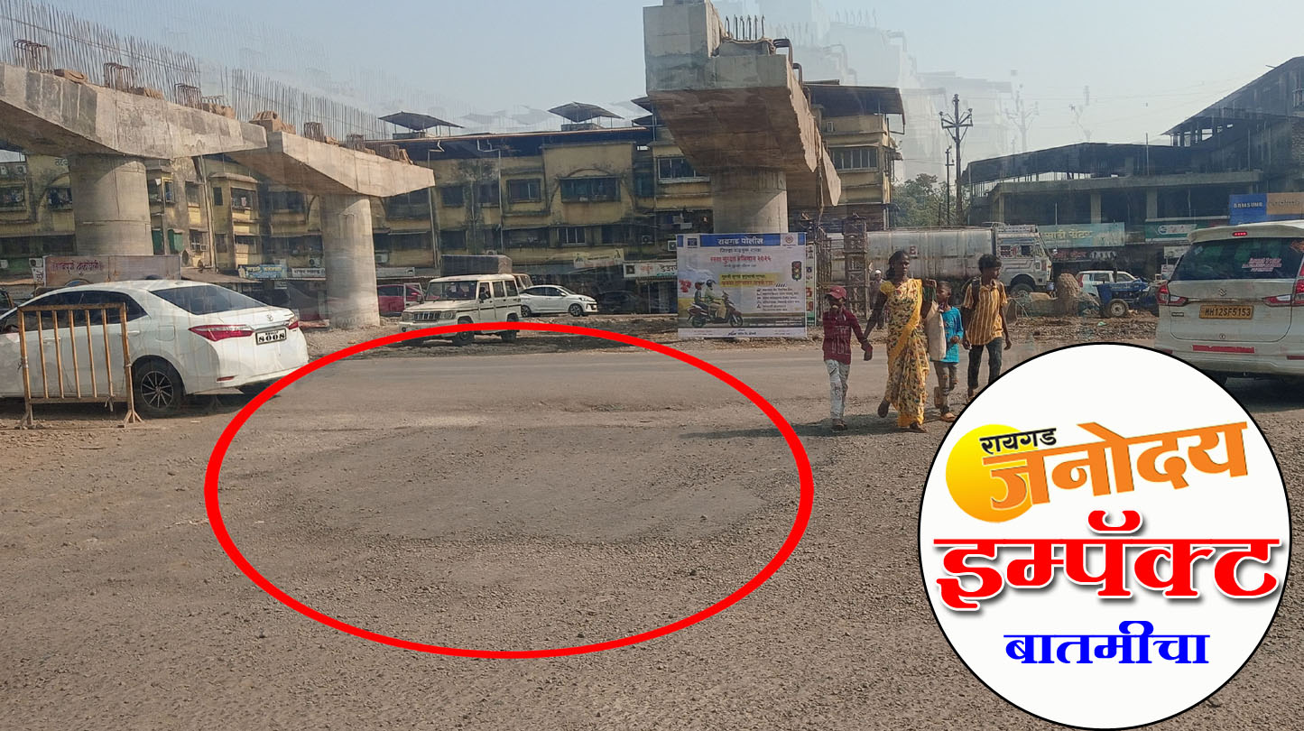 कोलाड बाजुकडून रोहा बाजुकडे जाणाऱ्या रस्त्याच्या सुरुवातीलाच काही दिवसापूर्वी प्रचंड मोठया प्रमाणात असणाऱ्या रहदारीमुळे मोठा खड्डा पडला होता. यामुळे वाहन चालविताना वाहन चालकांना खबरदारी घ्यावी लागत होती. शिवाय कोलाड बाजारपेठेत चौपदरीकरणाच्या उड्डाण पुलाचे काम सुरु असल्यामुळे महाडकडून मुंबईकडे जाणारी वाहतूक याच बाजूच्या रस्त्यावरून सुरु आहे. मुंबई-गोवा महामार्गावरुन खांब, माणगाव व सुतारवाडी या तिन्हीही बाजुकडून रोहा बाजूकडे जाणारी वाहने याच मार्गावरून जात असतात. येथे कोलाड वाहतूक पोलिस व ट्रॅफिक वॉर्डन वाहनांवर नियंत्रण ठेवण्यासाठी उभे असतात. परंतु या रस्त्यावर पडलेल्या खड्ड्यामुळे खड्डा चुकविण्याच्या नादात घाईगडबडीने वळसा घालतांना काही वेळा ही वाहने वाहतूक पोलिस व ट्रॅफिक वॉर्डन यांच्या अंगावरही जात असल्याचे दिसून येत होते. यामुळे मोठी दुर्घटना घडण्याच्या अगोदर संबंधितांनी लक्ष देऊन हा खड्डा भरण्यात यावा अशी बातमी ‘रायगड जनोदय’मधून प्रकाशित होताच हा खड्डा त्वरित भरला गेल्याने नागरिकांनी ‘रायगड जनोदय’चे आभार मानले.
