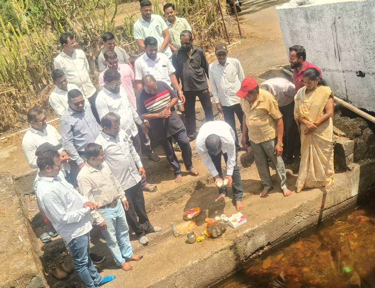 प्रारंभी उद्योजक पी पी बारदेशकर यांच्या हस्ते जलपूजन करण्यात आले. मान्यवरांच्या हस्ते पूजन करून श्रीफळ वाढवण्यात आले. यावेळी कालव्याची दुरुस्ती कामे, पाण्यासाठी पाटबंधारेच्या अधिकाऱ्यांनी जाणिवेतून सहयोग दिला. त्यासाठी प्रतिनिधीक म्हणून पाण्यासाठी तळमळीचे निरीक्षक निलेश दिसले यांच्या शेतकरी ग्राम सन्मान उद्योजक पी. पी. बारदेशकर व मान्यवरांच्या हस्ते करण्यात आला. दरम्यान, बळीराजा फांऊडेशनने कालव्याच्या पाण्यासाठी अविरत लढा दिला, चिकाटी कायम ठेवली त्याचा हा जलपूजन सोहळा साजरा करीत आहोत, अशी कौतुकाची थाप मान्यवरांनी दिली तर कालव्याला पाणी आल्याने वाशी, लांढर, बोरघर, तळाघर पाठोपाठ निवीकर सुखावून गेले हेच ठळकपणे नमूद झाले आहे.