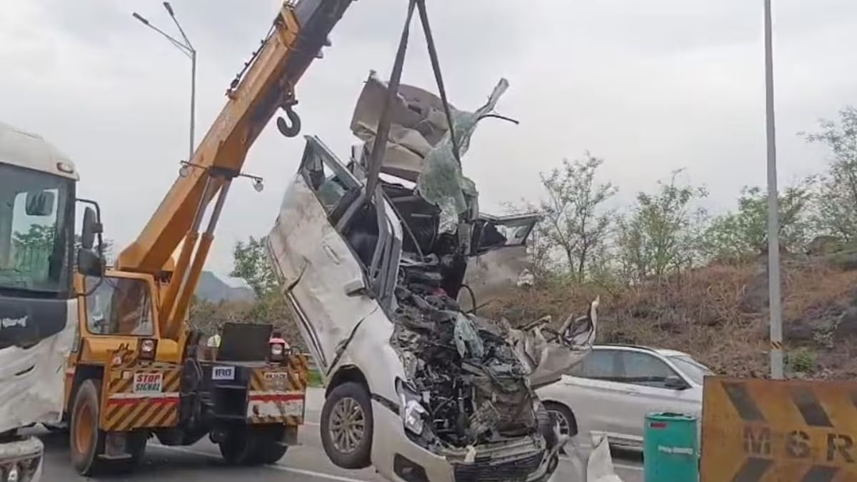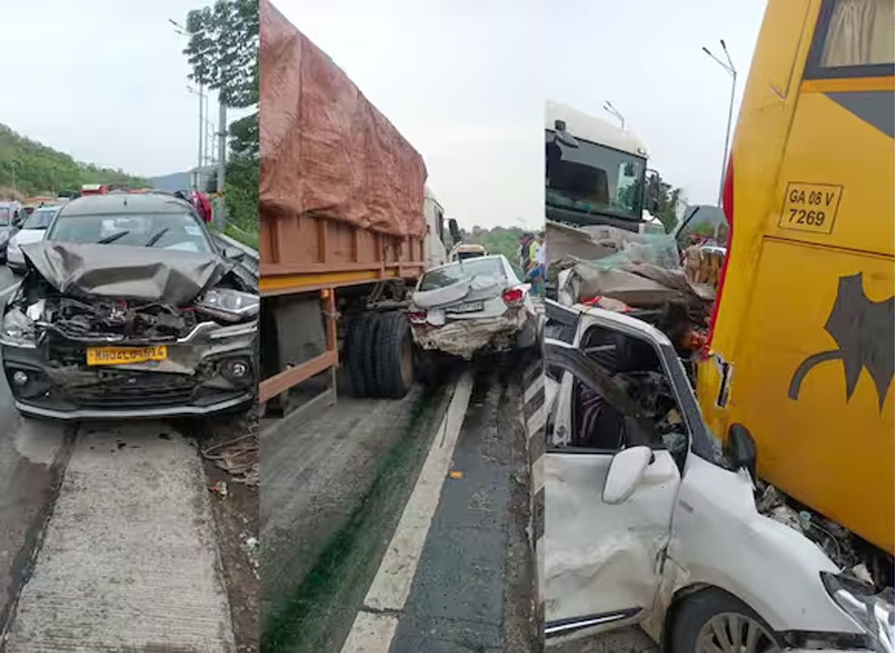 दुपारी 4 वाजण्याच्या सुमारास महामार्गावर काही कारणास्तव वाहतूक थांबलेली होती. त्याच वेळी पुण्याकडून येणारा एक ट्रेलर नियंत्रण सोडून भरधाव वेगाने आला. या ट्रेलरने क्रमशः एक इर्टिगा, सियाझ, हुंडाई कार आणि एका एसटी बसला धडक दिली. यानंतर ट्रेलरने एका स्वीफ्ट कारला जोरात ठोकर दिली. त्या कारसमोर एक आराम बस उभी होती, त्यामुळे स्वीफ्ट कार थेट आराम बसच्या मागे जाऊन घुसली. या भीषण धडकेत कारमधील प्रवासी अक्षरशः चिरडले गेले. अपघातात स्वीफ्ट कारमधील अश्विनी हळदणकर व श्रिया अवताडे यांचा जागीच मृत्यू झाला. तर कारमधील अक्षय हळदणकर, वसुधा विजय जाधव (कोल्हापूर), सारिका अवताडे (घाटकोपर), 9 वर्षीय सारिका विजय जाधव, 3 वर्षीय अविनाश विजय जाधव हे सर्व गंभीर जखमी झाले आहेत. जखमींना तत्काळ पनवेलच्या एमजीएम रुग्णालयात दाखल करण्यात आले.