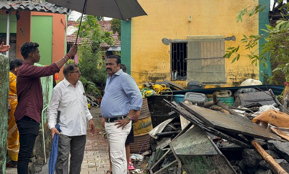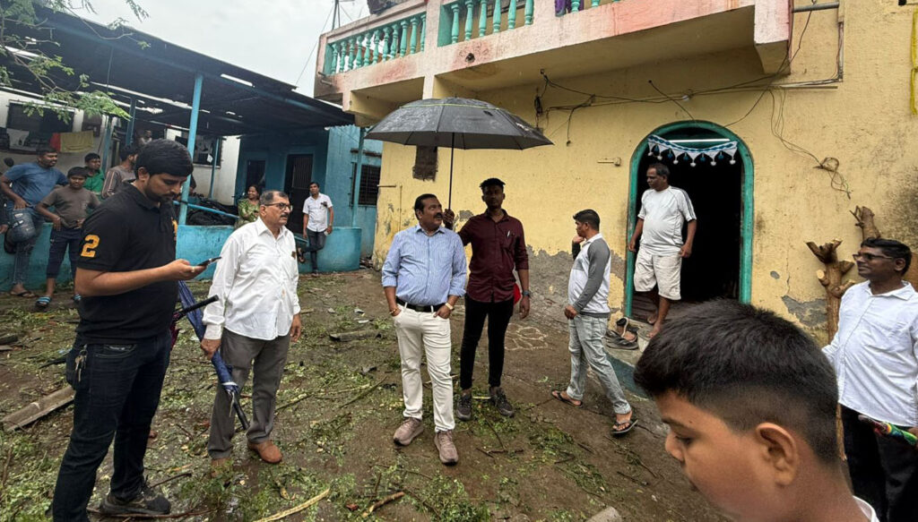 उरण : दि. २६ मे २०२५ रोजी सकाळी अचानक झालेल्या जोरदार पावसाने आणि चक्रीवादळाने संपूर्ण उरण तालुक्यामध्ये हाहाकार माजवला. उरण तालुक्यातील अनेक गावांमध्ये घरावरील पत्रे उडाले, पत्रे उडून घरामधील अनेक साहित्याची मोडतोड झाली आहे. अनेक विद्युत उपकरणांची नासधुस झाली आहे. कडधान्य वाया गेले आहेत, तसेच काही नागरिकसुद्धा यामध्ये दुखापतग्रस्त झाले आहेत. त्यामध्ये कळंबूसरे आणि सारडे या गावांमध्ये खूप मोठ्या प्रमाणामध्ये नुकसान झाले आहे. जिथे विषय गंभीर तिथे महेंद्रशेठ खंबीर या उक्तीप्रमाणे सतत गोरगरिबांना, संकटामध्ये असणाऱ्या नागरिकांना मदत करणारे नेते जे नाही आमदार नाही खासदार पण समाजाची असणारी बांधिलकी जोपासून प्रत्येक संकटाच्या वेळी धावून जाणारे रायगड जिल्हा काँग्रेस कमिटीचे अध्यक्ष महेंद्रशेठ घरत यांनी कळंबुसरे आणि सारडे या दोन्ही गावांमध्ये जाऊन ज्या ज्या घरी मोठ्या प्रमाणामध्ये नुकसान झाले आहे त्याची पाहणी केली आणि त्वरित त्यांना मदतीचे आश्वासन दिले आहे.