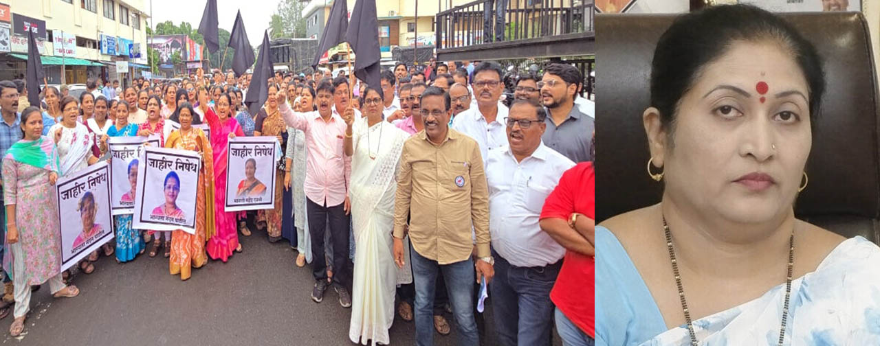 या घटनेचा निषेध करण्यासाठी आज अलिबाग येथे शेतकरी कामगार पक्षाच्या कार्यकर्त्यांनी रस्त्यावर उतरून मानसी दळवी व त्यांच्या समर्थकांविरोधात काळे झेंडे, बॅनर दाखवून जोरदार घोषणाबाजी केली. या आंदोलनात शेकापचे कार्यकर्ते मोठ्या संख्येने सहभागी झाले.