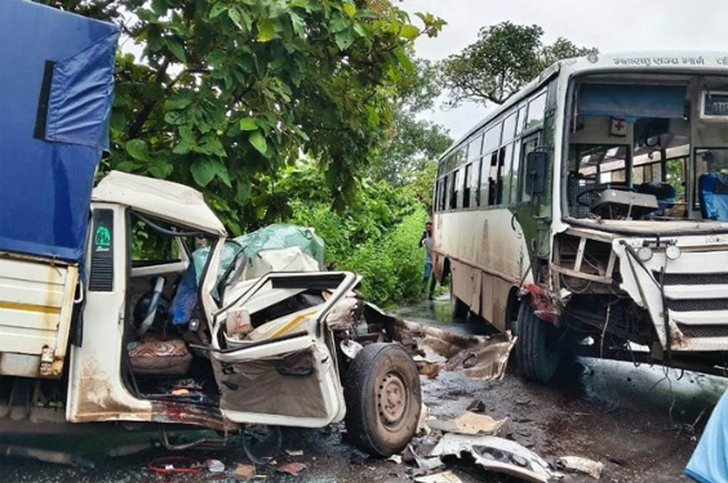 रेवदंडा-मुरुड मार्गावर विहूर गावाजवळ आज (शनिवार, दि. २७) दुपारी दीडच्या सुमारास एसटी बस व पिकअप टेम्पो यांच्यात समोरासमोर भीषण धडक होऊन १३ प्रवासी जखमी झाले आहेत.
