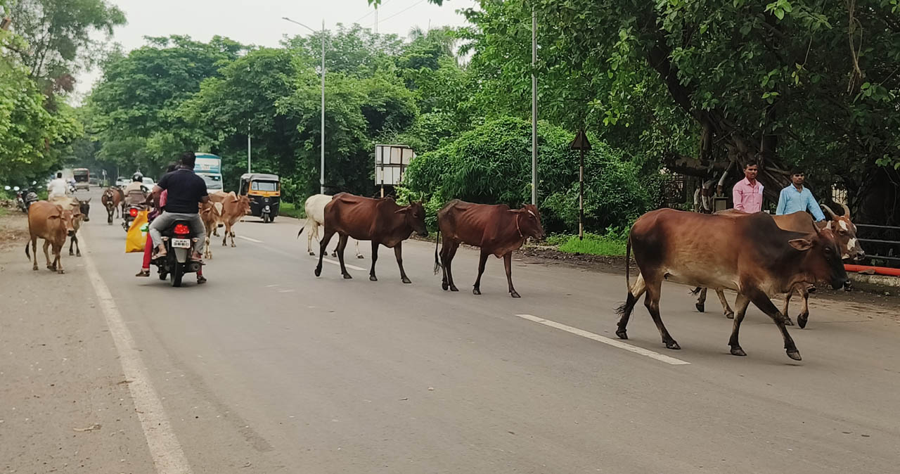 रोहा कोलाड रस्त्यावर मध्येच गुरे बसलेली दिसतात. रस्त्यामध्ये गुरे बसत असल्याने वाहतुकीला अडथळा निर्माण होत असून अपघात वाढत आहेत. या गुरांच्या मालकांनी घरी शांत झोपून गुरांना रस्त्यावर मोकाट सोडून देणे चुकीचे आहे. सर्वत्र गुरे चोरांची भीती असूनही मुक्या प्राण्यांना रस्त्यावर मोकाट सोडणाऱ्या मालकांवर संबंधित प्रशासनाने कारवाई करणे गरजेचे आहे.