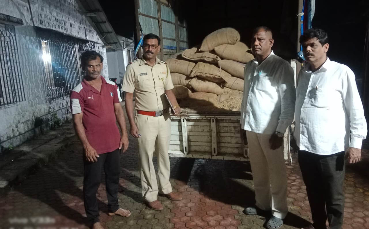 वाहन चालक दिपक भागोजी दंत (रा. वावळोली, ता. सुधागड) याने चौकशीत सांगितले की, हा माल गारभट येथील रेशनिंग दुकानदार शरद उर्फ नाना शिंदे यांच्या दुकानातून भरून पाली येथील ललितशेठ फुलचंद ओसवाल यांच्याकडे नेत होता. ही माहिती तत्काळ कोलाड पोलीस ठाण्याचे सहाय्यक पोलीस निरीक्षक नितीन मोहिते यांना देण्यात आली. त्यांच्या आदेशानुसार पिकअप गाडी (क्र. एम.एच.०६ बीडब्ल्यू ६२८६) कोलाड पोलीस ठाण्यात आणण्यात आली. पोलीस उपनिरीक्षक भोजकर यांनी पंचनामा करून तपास केला असता, गव्हाच्या ५० किलो वजनाच्या १६ गोण्या (एकूण ८०० किलो किंमत १६,००० रुपये) आणि तांदळाच्या ५० किलो वजनाच्या २५ गोण्या (एकूण १,२५० किलो किंमत २५,००० रुपये) असा महाराष्ट्र शासनाचा लोगो असलेला ४१ हजार रुपयांचा माल आढळून आला. तसेच ५ लाख रुपयांची पिकअप गाडी मिळून एकूण ५ लाख ४१ हजार रुपयांचा मुद्देमाल जप्त करण्यात आला आहे.