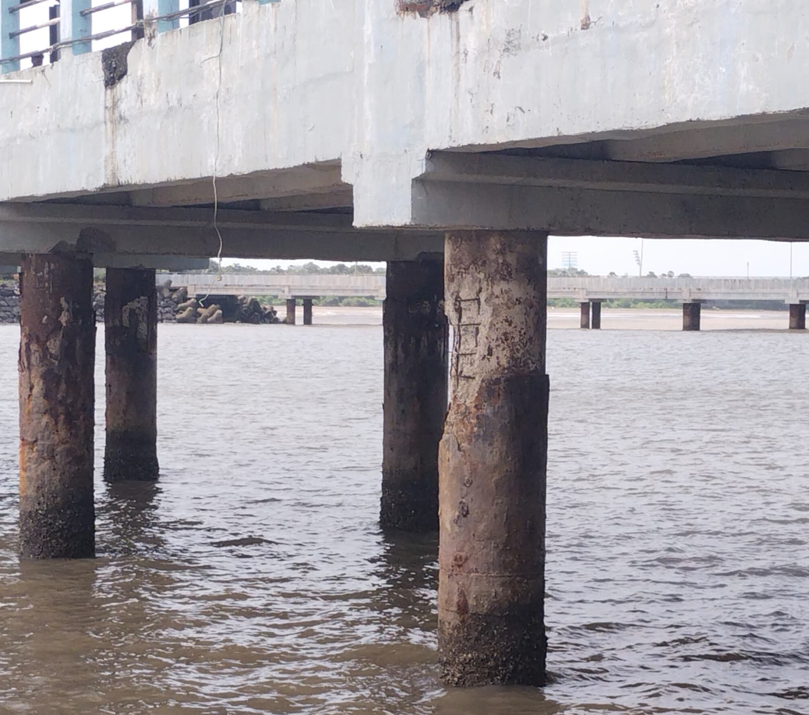 मांडवा जेट्टीवरील पुलाचे खांब झाले निकामी, अनेक ठिकाणी खांबांचे सिमेंट गळून पडल्यामुळे लोखंडी सळई आल्या बाहेर