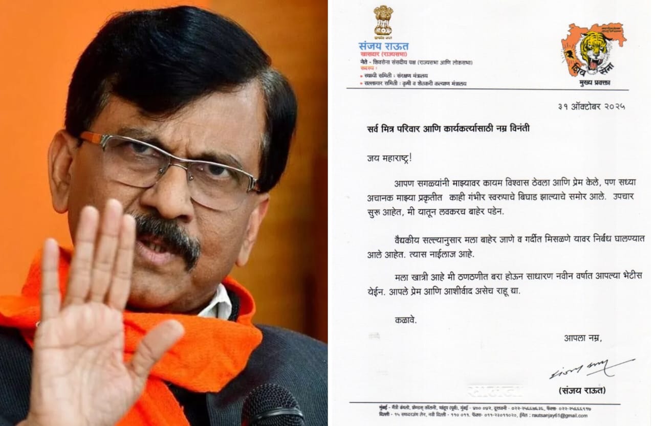 राऊत यांनी नुकतेच प्रसिद्ध केलेल्या पत्रात “वैद्यकीय कारणास्तव गर्दीत मिसळण्यावर डॉक्टरांनी बंदी घातली आहे, मी नवीन वर्षात पुन्हा भेटेन” असे म्हटल्याने त्यांच्या अचानक शांततेचा राजकीय अर्थ लावला जात आहे.
