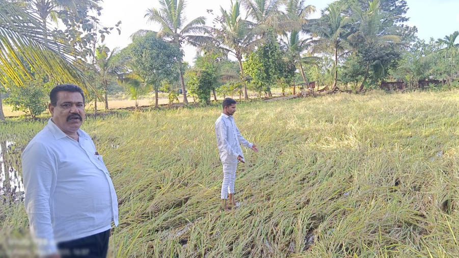 यावेळी प्रसार माध्यमांशी बोलताना ज्ञानदेव पवार पुढे म्हणाले कि,भारताच्या इतिहासात पहिल्यादांच शेतकऱ्यांनी भाताची पेरणी केल्यापासून अगदी लावणी – कापणी पर्यंत सातत्याने मुसळधार पाऊस पडत आहे. अगदी थंडीचे दिवस आले असतानाही अवकाळी मुसळधार पाऊस पडत आहे. त्यामुळे कोकणातील शेतकरी बेहाल झाला आहे. पश्चिम महाराष्ट्रात शेतकऱ्यांची शेती एकरीत आहे. तर कोकणात शेतकऱ्यांची शेती गुंठ्यात आहे. भातशेती म्हणजे गरीब शेतकऱ्यांच्या उपजीविकेचे साधन आहे. गरीब शेतकरी काबाड कष्ट करून आपल्या कुटुंबाचा उदरनिर्वाह भागवीत असतो. त्यामध्ये या अवकाळी पावसामुळे शेतकऱ्यांच्या डोक्यावर आसमानी संकट कोसळले आहे. अवकाळी पावसाने शेतकऱ्यांच्या हाता तोंडाशी आलेला भात शेतातच आडवा झाला आहे. अनेक शेतकऱ्यांनी भात कापणी करून रचून ठेवलेल्या मळण्या भिजल्या आहेत. एकंदरीत शेतकऱ्यांचे हे भात पूर्णतः नष्ट झाले असून गरीब शेतकऱ्यांच्या डोळ्यांतून अश्रू येत आहेत. या शेतकऱ्यांना पुढे स्वतःचे बियाणे देखील मिळणार नसून ती बियाणे विकत घ्यावी लागणार आहेत.