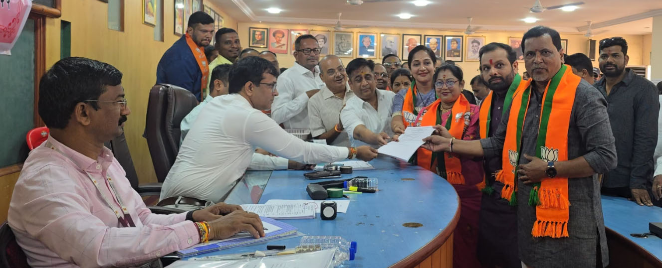 अलिबाग नगरपालिका निवडणुकीत महायुतीने आज दणदणीत शक्तीप्रदर्शन करत उमेदवारी अर्ज दाखल केले. ढोल-ताशांच्या गजरात आणि उत्साहपूर्ण मिरवणुकीत शिवसेना-भाजप महायुतीचे उमेदवार निवडणूक कार्यालयात दाखल झाले. नगराध्यक्षपदासाठी भाजपच्या तनुजा पेरेकर यांनी अर्ज सादर केला, तर नगरसेवक पदांसाठीही महायुतीचे अनेक उमेदवार मोठ्या उत्साहात अर्ज भरताना दिसले.