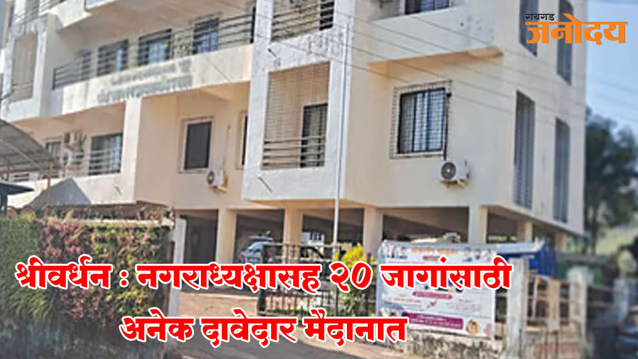 श्रीवर्धन नगरपालिका निवडणुकीसाठी उमेदवारी अर्ज दाखल करण्याचा आज अंतिम दिवस असल्याने शहरात राजकीय तापमान उच्चांकी पातळीवर पोहोचले होते. सकाळपासूनच विविध पक्षांच्या रॅल्या, घोषणाबाजी आणि कार्यकर्त्यांची मोठी गर्दी यामुळे संपूर्ण शहरात उत्साहाचे वातावरण निर्माण झाले होते. नगराध्यक्ष पदासह १० प्रभागांमधील प्रत्येकी दोन अशा एकूण २० जागांसाठी उमेदवारांनी आपली नामनिर्देशन पत्रे दाखल करून निवडणुकीचे रिंगण अधिकच रंगतदार केले आहे.