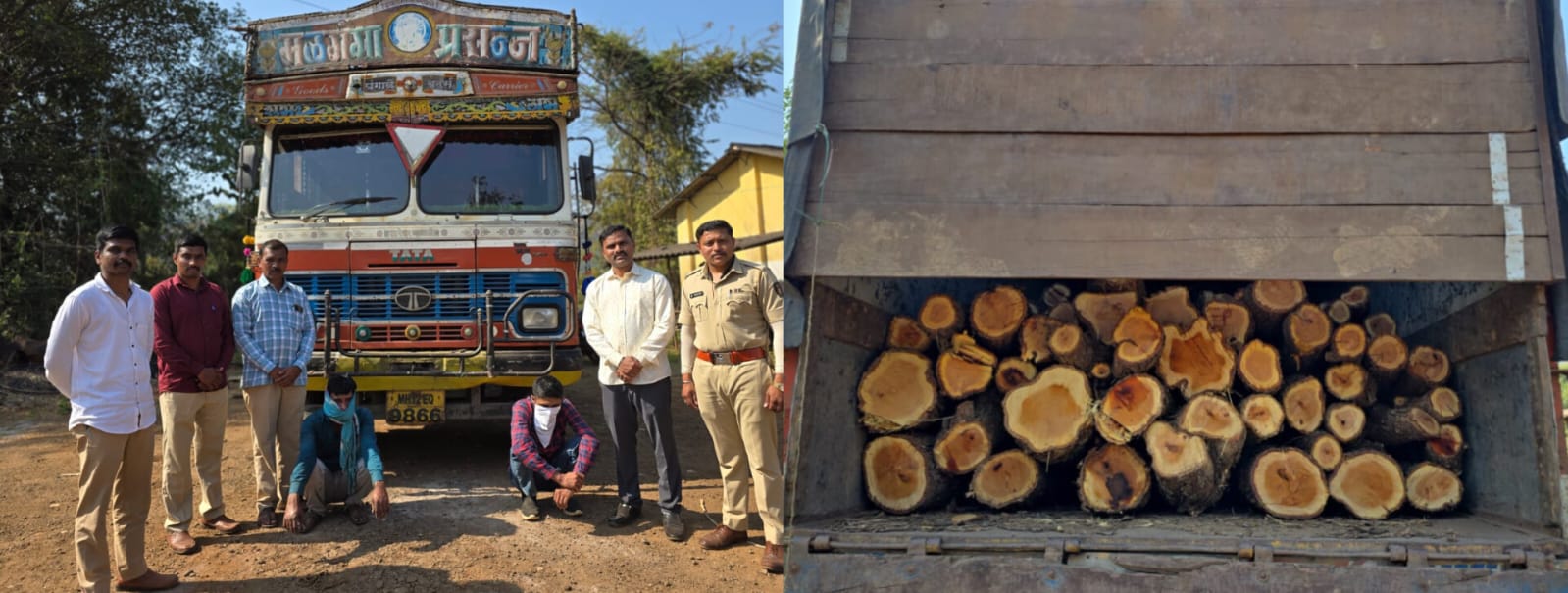 याबाबत अधिक माहिती अशी की, मुंबई-गोवा महामार्गावरून MH-12-EQ-9866 क्रमांकाचा ट्रक संशयास्पद रित्या जात असल्याचे वनविभागाच्या कर्मचाऱ्यांच्या लक्षात आले. या ट्रकच्या पुढे त्याला रस्ता दाखवण्यासाठी MH-03-DQ-6109 क्रमांकाची यामाहा FZ मोटारसायकल पथदर्शक म्हणून चालत असल्याचे तपासात निष्पन्न झाले. वनविभागाने तत्काळ कारवाई करत मोहम्मद अरसद (राहणार गुलशन नगर, जिल्हा बलसाड, गुजरात) आणि मोहम्मद उस्मान नृद्दिन खान (राहणार मुलुंड कॉलनी, मुंबई) या दोघांना ताब्यात घेतले आहे.