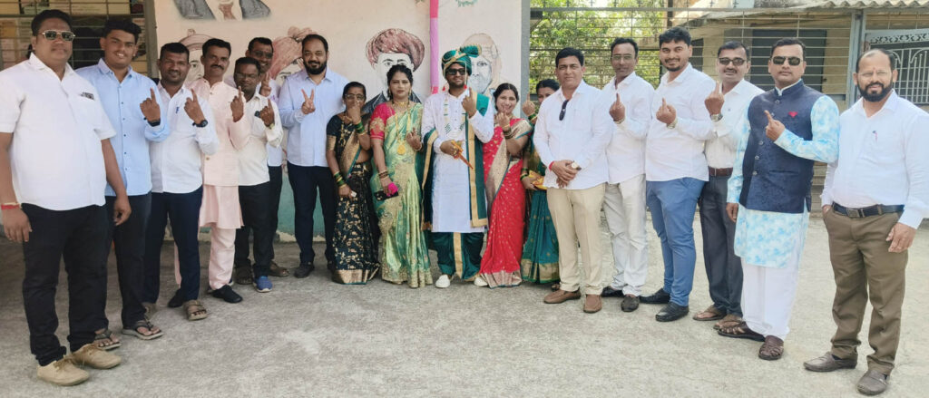 या प्रसंगी नवरदेवासोबत माजी सरपंच प्रभावती जाधव, राधिका जाधव, ज्योती जाधव, नीलम जाधव, सतीश जाधव, पांडुरंग जाधव, सूर्यकांत मोरे, अनिमेश पाशिलकर, नयन रटाटे, महेंद्र रटाटे, उमेश रटाटे, गणेश भोकटे, ओमकार पाशिलकर, राकेश म्हसकर, भास्कर रटाटे, राजू भोकटे यांसह मित्रपरिवार व नातेवाईक मोठ्या संख्येने उपस्थित होते. लोकशाहीच्या या उत्सवात सहभागी होऊन वृतिक जाधव खऱ्या अर्थाने ‘आदर्श नागरिक’ ठरला असून, त्याचे हे पाऊल भविष्यातील मतदारांसाठी प्रेरणादायी ठरणार आहे.